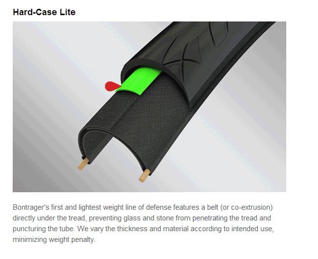 Bontrager's AW1 Hard-Case Lite Tire is a great choice for riders who value low weight and quality road feel, but want a single tire for year-round riding. Its sub-tread puncture barrier keeps you rolling so you can concentrate on putting in the miles. And, the Hard-Case Lite's high-mileage tread compound provides optimal traction, low-rolling resistance, and great durability no matter what the weather, so this tire is perfect for training or commuting.