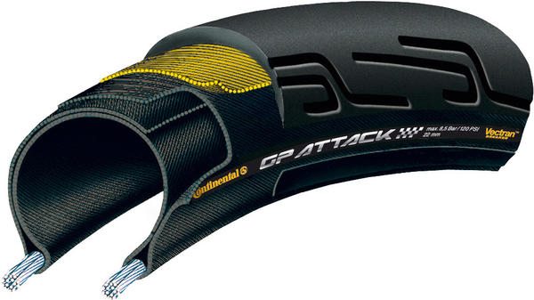 Upgrade your bike with Continental's Grand Prix Attack and Force tires front and rear. The Attack is specifically engineered for the cornering and braking forces encountered at the front wheel. The Force rear tire boasts a harder, thicker rubber for excellent rolling resistance, traction, and durability. Both tires boast Continental's Black Chili rubber compound for excellent durability and performance, and their Vectran Breaker technology for exceptional puncture protection.