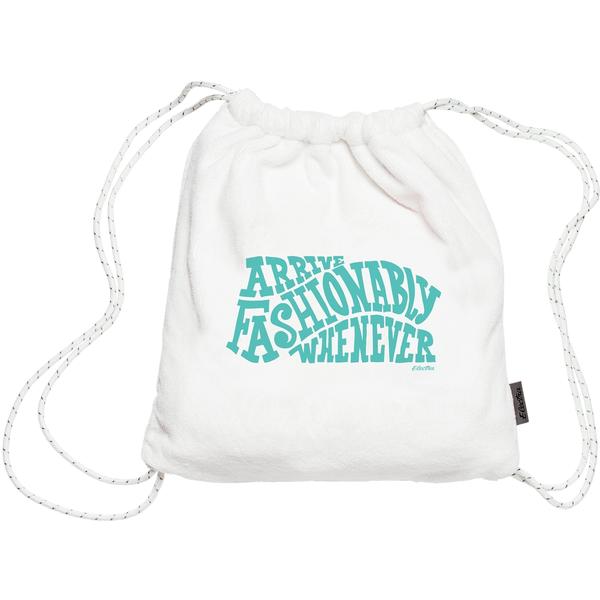 - Towel folds conveniently into itself, creating a single unit cinched backpack