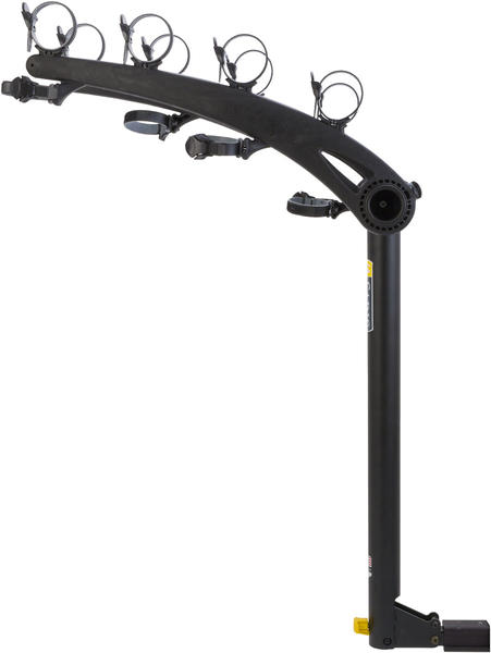 Saris' Axis Steel 4-Bike provides a stable, easy way to transport your bikes. This lightweight hitch rack is easy to install or remove and it tilts to provide access to the rear of your vehicle. The durable frame securely hauls four bikes of up to 35 pounds each, and it fits both standard hitch sizes. Its ratcheting anti–sway straps secure and stabilize your bikes while protecting their finish.