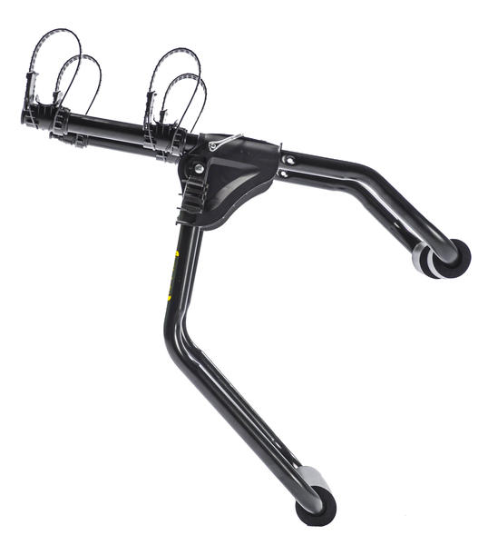 Hit the road today with Saris’ Sentinel 2-Bike rack—it’s ready to go right out of the box, easy to mount, and securely holds two bikes. The frame adjusts to the contours of your car and folds down flat for simple storage. To protect your car and provide a solid mount, the four hold-down straps have coated hooks, while the legs are foam-padded. Stiff ratcheting straps ensure a firm grasp on your bikes.