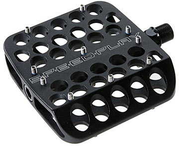 Speedplay's Drillium pedals are the ultimate platform pedals for downhill, slalom and BMX. The huge concave platforms with replaceable pins (20 per pedal) deliver a surefooted grip and incredible power transfer. Plus, the 12mm chromoly axles offer maximum strength. The precision bearings (one needle, two cartridge in each pedal) guarantee smooth, durable operation and these amazing pedals even feature built-in grease ports for easy lubrication with no disassembly.